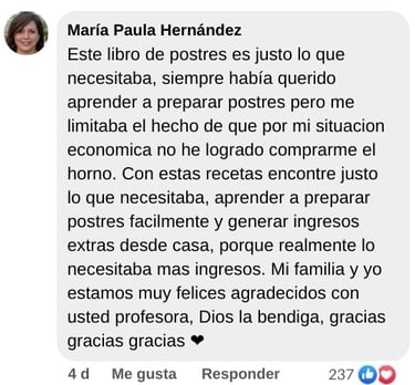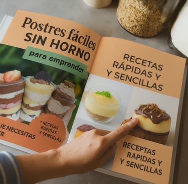 En su libro “Postres Fáciles Sin Horno para Emprender”, comparte las técnicas y recetas que perfeccionó durante años, guiándote paso a paso para lograr resultados profesionales, incluso si eres principiante.