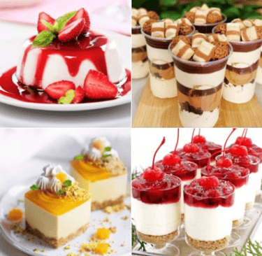 ✅ Aprenderás paso a paso a elaborar una gran variedad de postres sin horno que no encontrarás en ningún otro lugar, como: